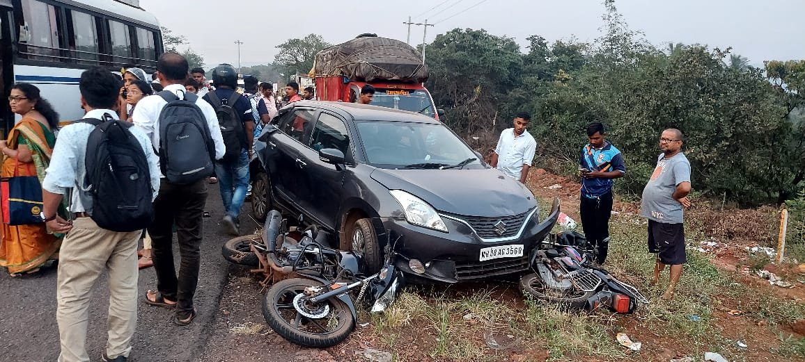 रत्नागिरी :मुंबई-गोवा महामार्गावरील हातखंबा येथे गुरुवार 2 नोव्हेंबर रोजी सायंकाळी 6.15 वाजता मिनी बसच्या गाडीची दोन दुचाकी आणि एका कारला