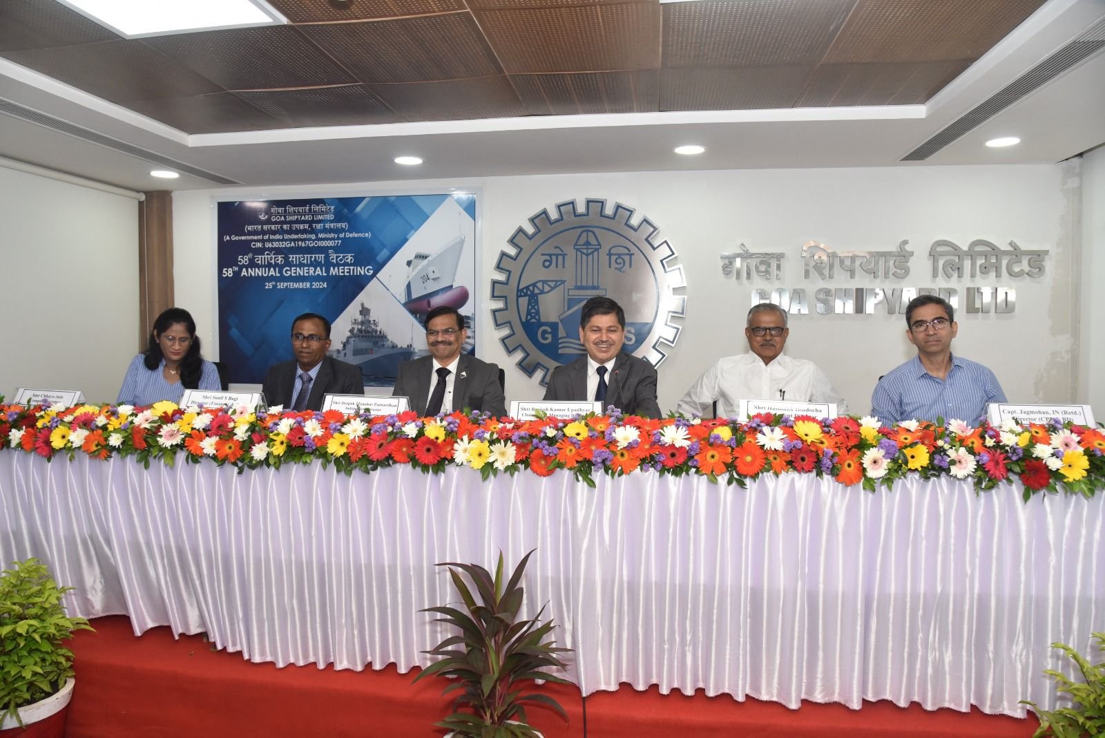 भागधारकांना १४०% लाभांश. रत्नागिरी : गोवा शिपयार्ड लि. ची ५८ वी वार्षिक सभा गोवा शिपयार्डच्या गोवास्थित कार्यालयात अध्यक्ष तथा मॅनेजिंग