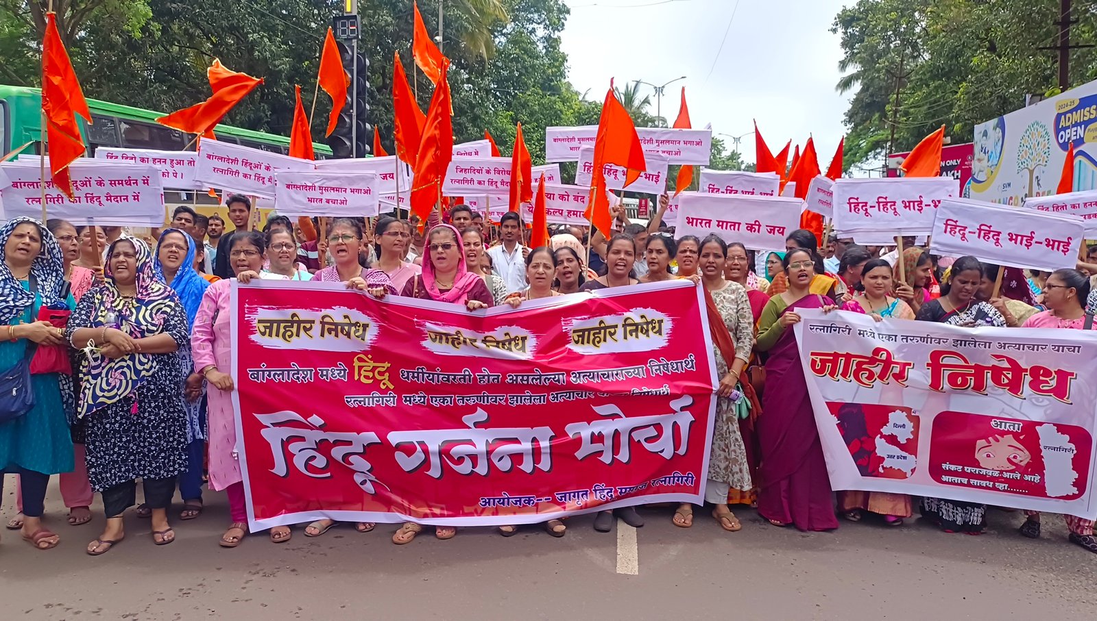 रत्नागिरी:- हिंदू-हिंदू भाई भाई, बांग्लादेशी हिंदूंच्या समर्थनार्थ रत्नागिरीतील हिंदू मैदानात, बांग्लादेशी, रोहिंग्या मुसलमान हटवा असे नारे देत रत्नागिरीतील जागृत हिंदू