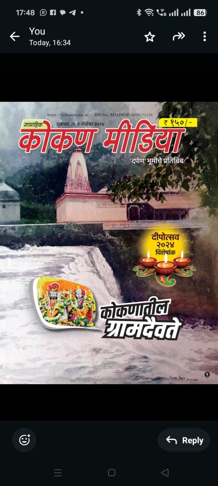 रत्नागिरी : रत्नागिरीतील कोकण मीडियातर्फे दिवाळी अंकासाठी कोकणातील ग्रामदैवते या विषयावरील लेख आणि चित्रकला स्पर्धेचे बक्षीस वितरण लांजा येथे येत्या
