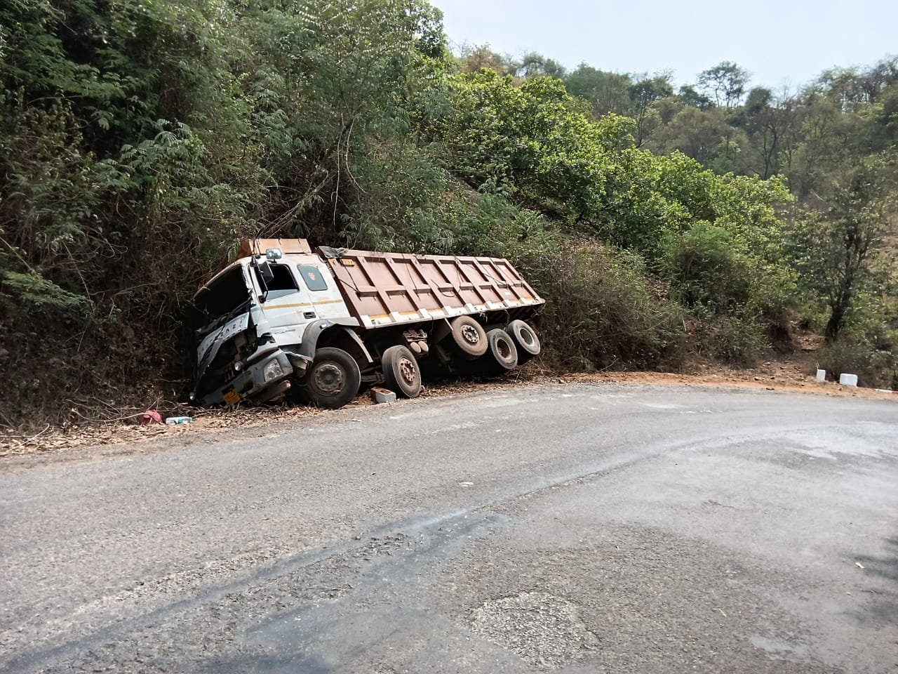 संगमेश्वर:नागपूर-रत्नागिरी राष्ट्रीय महामार्ग क्र. १६६ वर मौजे दख्खन गावच्या हद्दीत साखरेची पोती घेऊन जाणारा १४ चाकी ट्रक भीषण अपघाताचा बळी