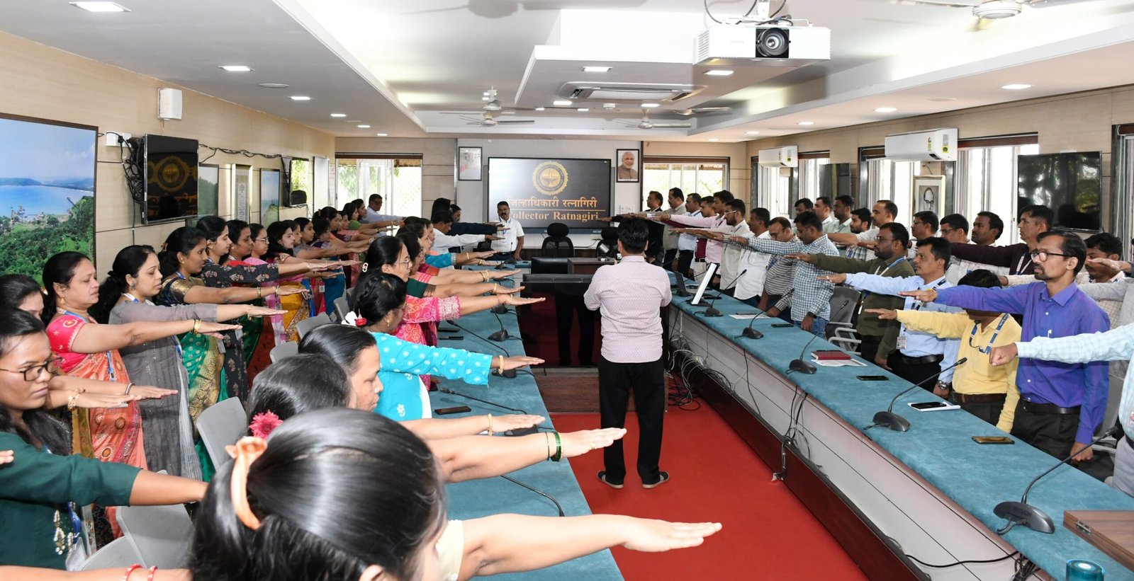 रत्नागिरी, : मुख्य निवडणूक अधिकारी कार्यालयाच्या सूचनेनुसार 25 जानेवारी या राष्ट्रीय मतदार दिनानिमित्त जिल्हाधिकारी कार्यालयात आज मतदारांसाठीची प्रतिज्ञा घेण्यात आली.