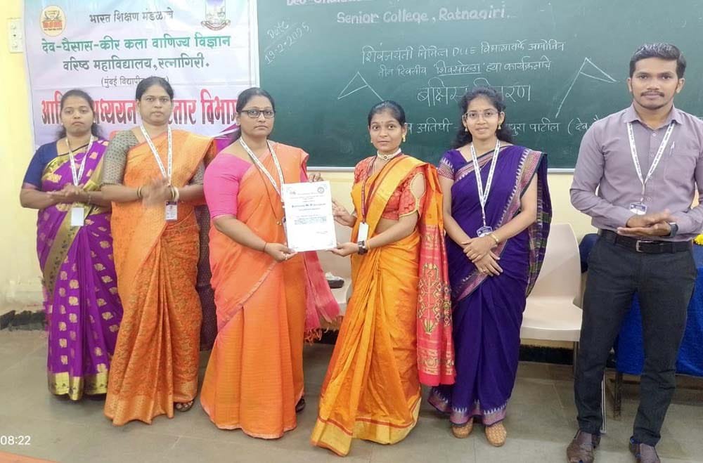 रत्नागिरी : भारत शिक्षण मंडळाच्या देव, घैसास, कीर, वरिष्ठ महाविद्यालयामध्ये शिवजयंतीनिमित्त आजीवन अध्ययन व विस्तार विभागाअंतर्गत तीन दिवसीय शिवसोहळा कार्यक्रमाचा