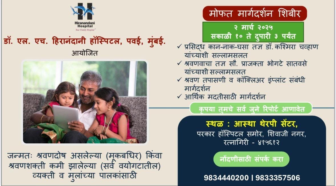 श्रवणदोष असणाऱ्या सर्व वयोगटांतील व्यक्तींसाठी “आस्था”मध्ये मोफत मार्गदर्शन शिबीर