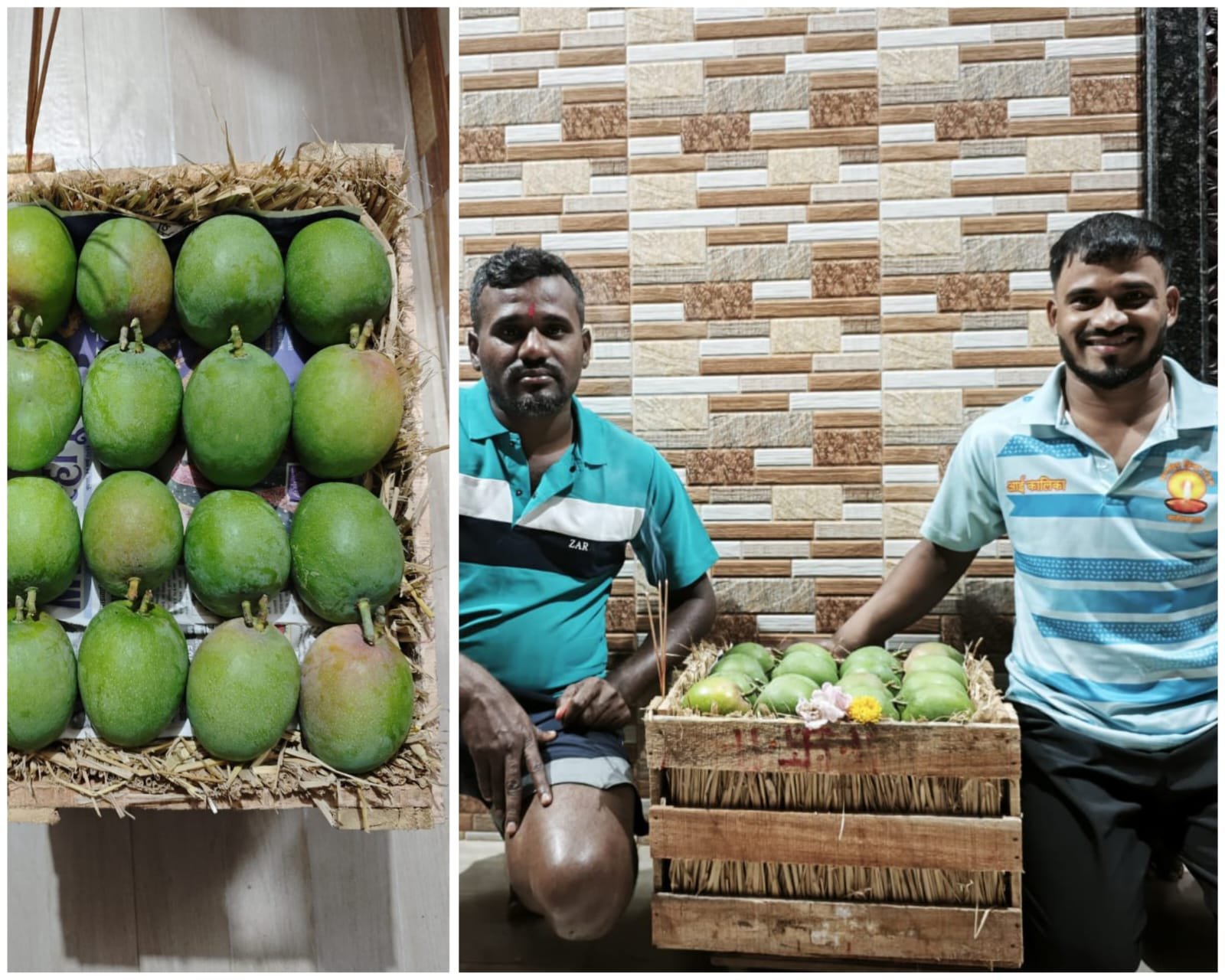 फुणगूस खाडीपट्ट्यातून पहिल्यांदा परचुरीतील गोणबरे बंधू यांची आंबा पेटी पुण्यात दाखल