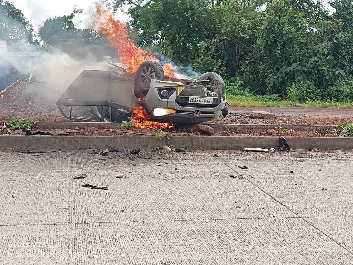 रत्नागिरी : सिंधुदुर्गहून रत्नागिरीकडे येत असताना रस्त्यावरील कामामुळे केलेल्या मार्गातील बदलाचा फलक न दिसल्याने एक कार थेट कठड्याला धडकून पलटी