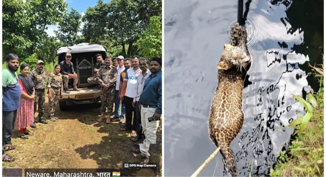 गणपतीपुळे येथे विहिरीत पडलेल्या बिबट्याची सुटका
