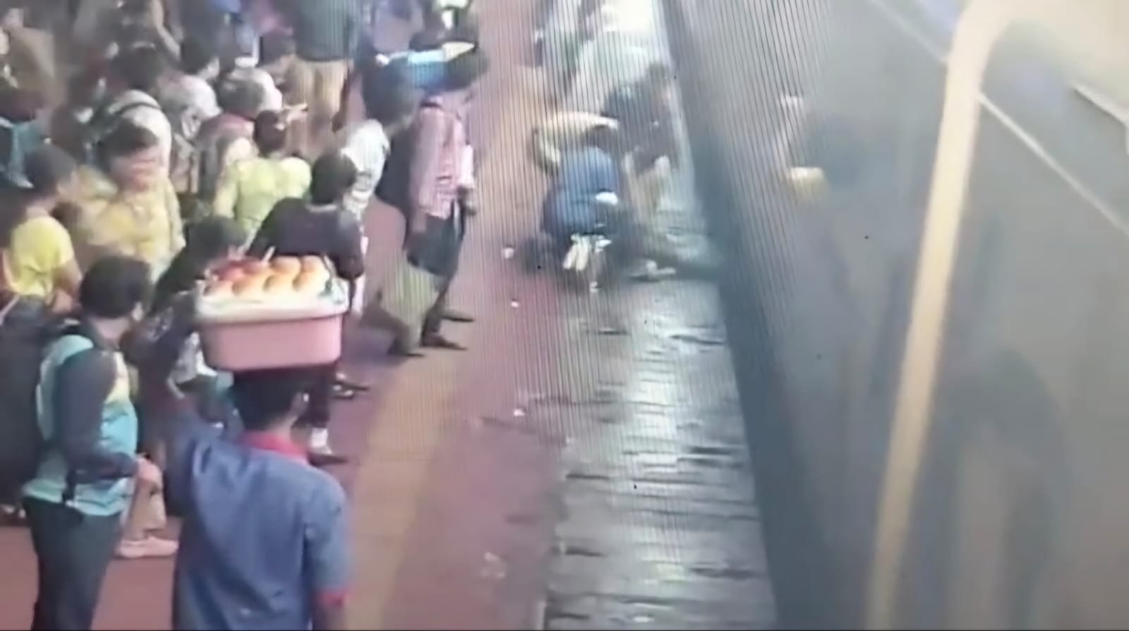 रत्नागिरी: रत्नागिरी रेल्वे स्थानकात आज सकाळी एक मोठी दुर्घटना टळली. चालत्या रेल्वेतून उतरण्याचा प्रयत्न करणाऱ्या एका तरुणाचा तोल जाऊन तो