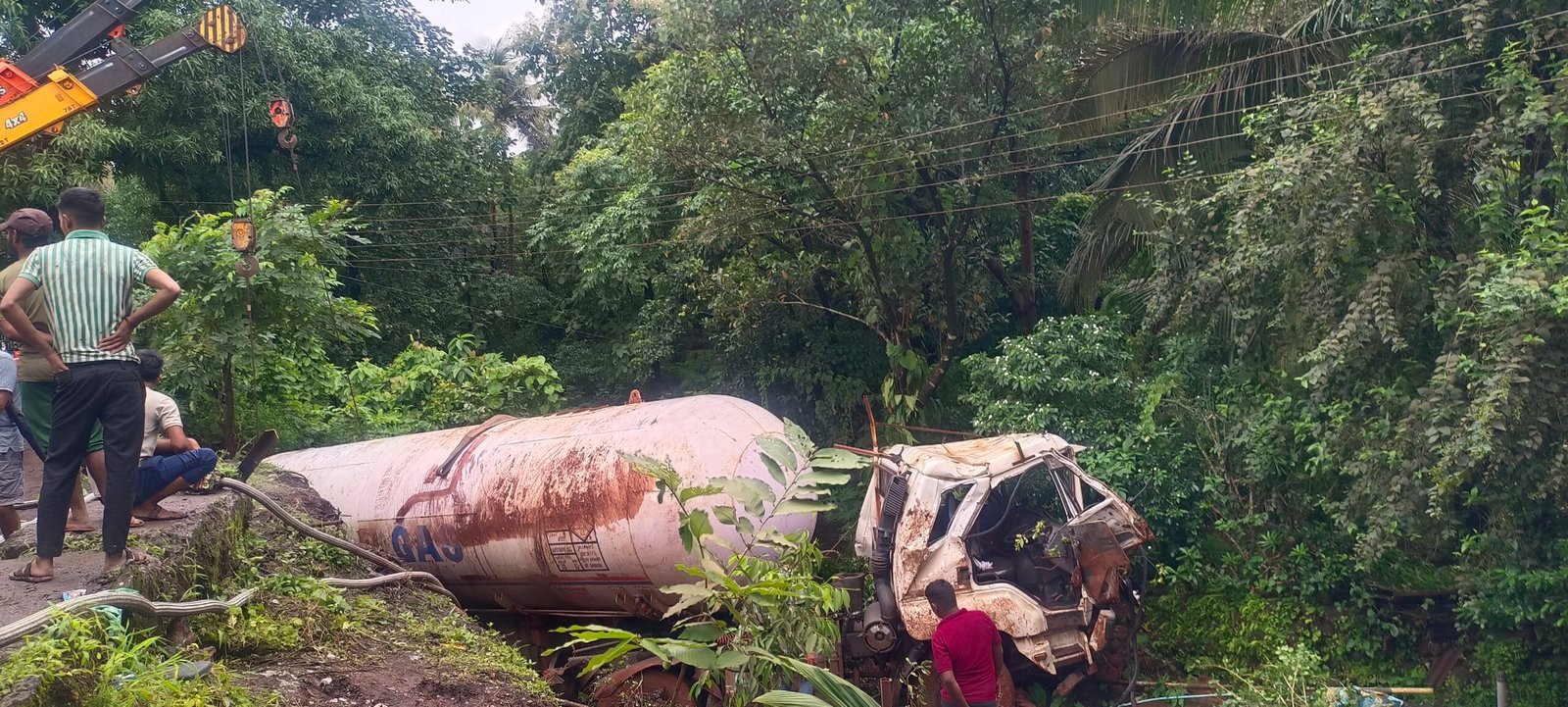 रत्नागिरी : मुंबई-गोवा राष्ट्रीय महामार्गावर हातखंबा शाळेजवळील अवघड वळणावर २८ जुलै रोजी रात्री अकरा वाजता गॅस टँकर पलटी झाल्याची धक्कादायक