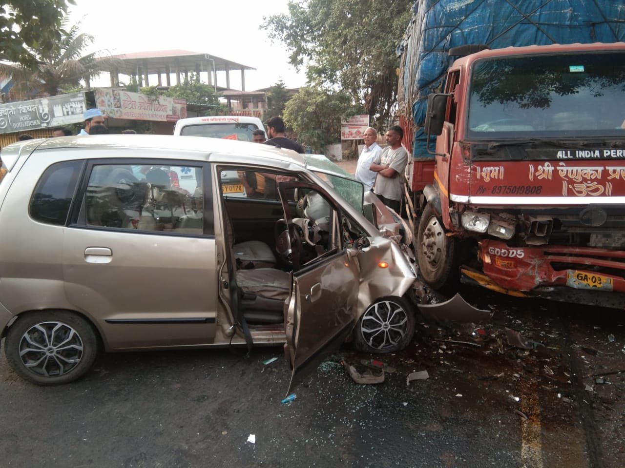 दोन लहान बालकांचा मृत्यू खेड :मुंबई-गोवा महामार्गावरील खेड येथे शुक्रवारी सायंकाळच्या सुमारास ट्रक व मारुती इस्टिलो कार यांच्यात झालेल्या भीषण