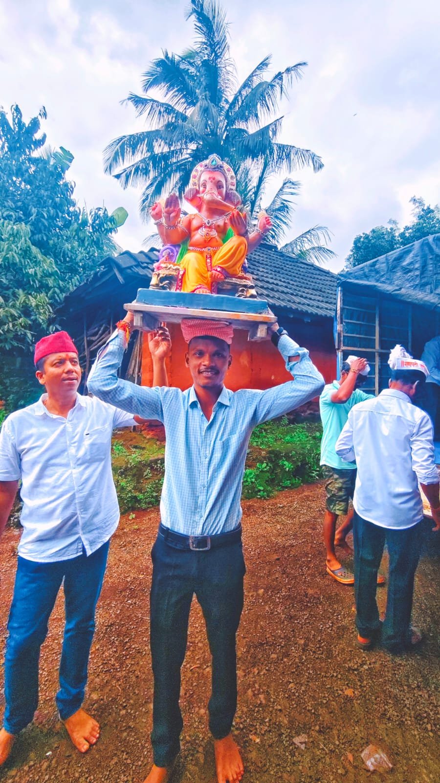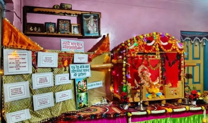 लांजा: शेळवीवाडी हर्चे, ता. लांजा येथील तोडणकर कुटुंबीयांनी घरगुती गणपती सजावटीत कोकणातील पालखीतून गणरायाचे आगमन दाखवले आहे. तसेच एक पेड