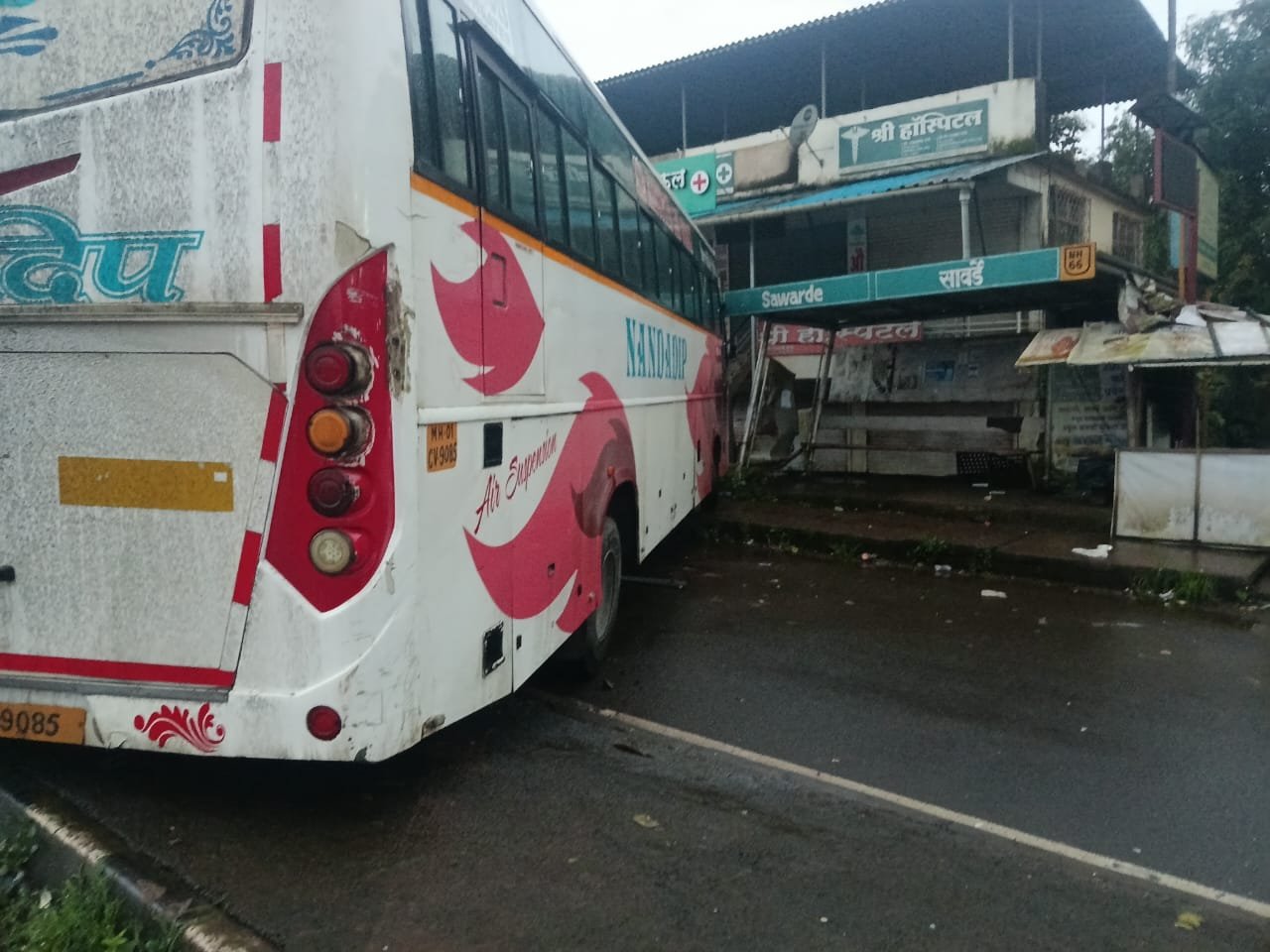 सावर्डे (ता. चिपळूण) येथे मुंबई–गोवा महामार्गावर आज पहाटे साडेपाचच्या सुमारास एका खाजगी आराम बसचा अपघात झाला. अतिवेगामुळे बसवरील नियंत्रण सुटल्याने