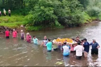 पालकमंत्री ना. सामंत यांच्याकडू 30 लाखांचा निधी मंजूर रत्नागिरीसंगमेश्वर तालुक्यातील कडवई येथील वाणी वाडीला स्मशानभूमीकडे जाणाऱ्या मार्गावर पूल (साकव) नसल्याने