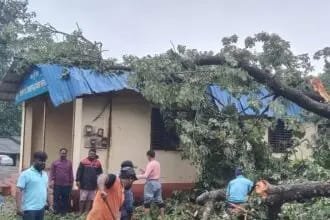 संगमेश्वर : शहरातील आंबेडकर नगर येथे शनिवारी सकाळी नऊ वाजताच्या सुमारास सुमारे दीडशे वर्षे जुना असलेला एक महाकाय शेवर वृक्ष