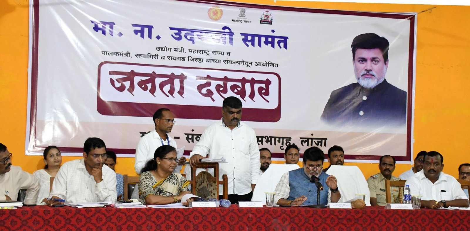 लांजा येथील संकल्पसिध्दी सभागृहात आज जनता दरबार घेण्यात आला. यावेळी नगराध्यक्ष मनोहर बाईत, प्रांताधिकारी वैशाली माने, गटविकास अधिकारी संतोष म्हेत्रे आदी उपस्थित होते.