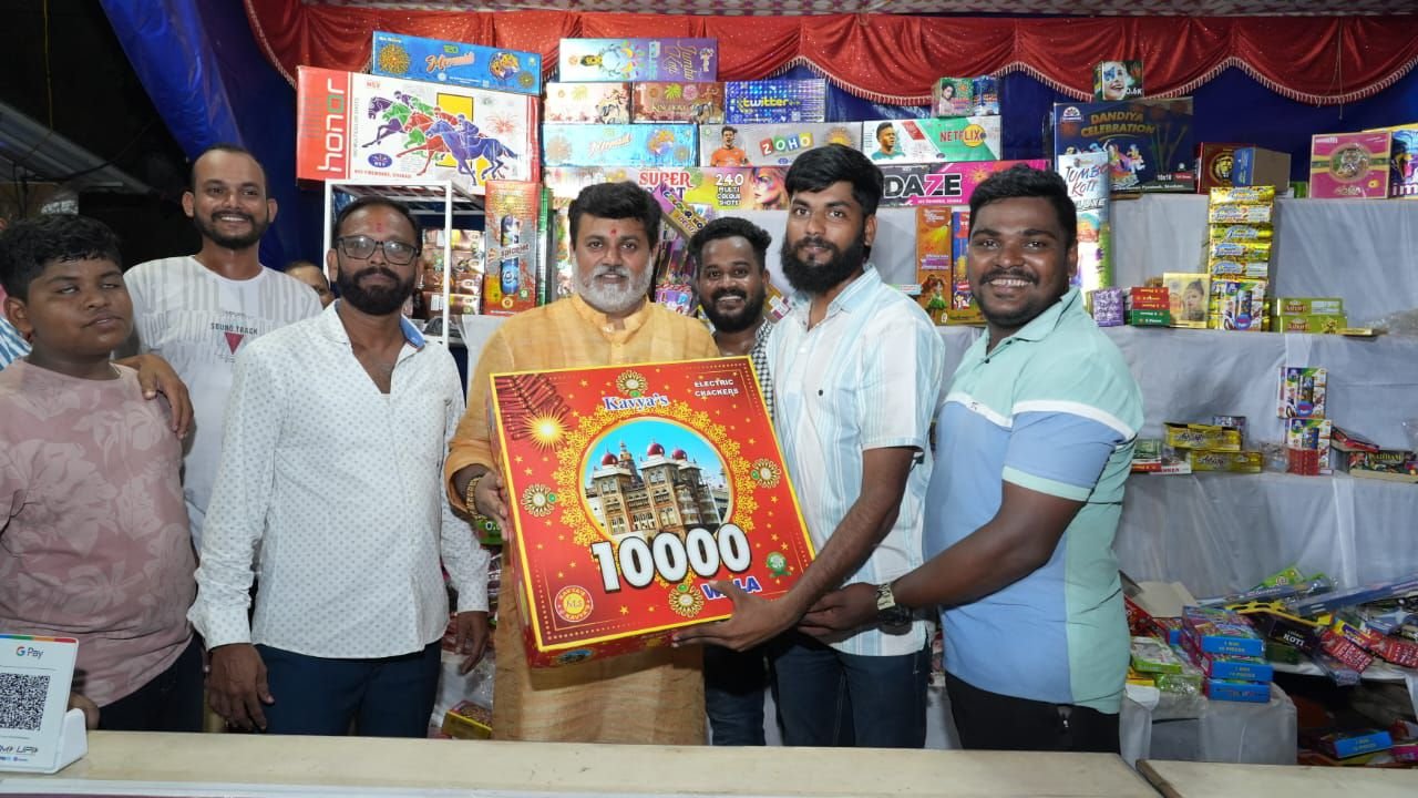 रत्नागिरी झाडगाव येथे मंत्री उदय सामंत यांचा फटाक्यांच्या स्टॉलला दीली भेट