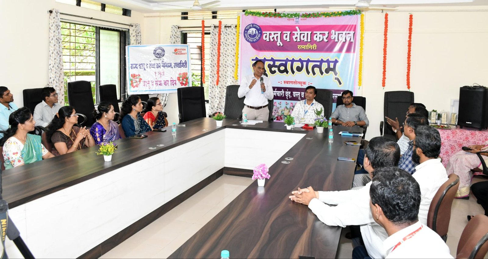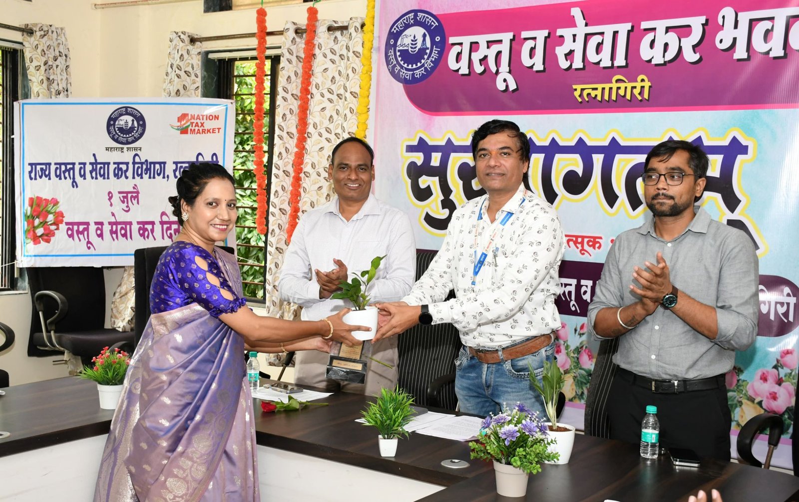 माननीय नांदेडकर साहेब अप्पर राज्यकर आयुक्त व माननीय श्रीमती थोरात मॅडम राज्यकर सहआयुक्त कोल्हापूर विभाग यांच्या मार्गदर्शनाखाली रत्नागिरी कार्यालय येथे 1 जुलै वस्तू व सेवा कर दिन उत्साहात साजरा करण्यात आला