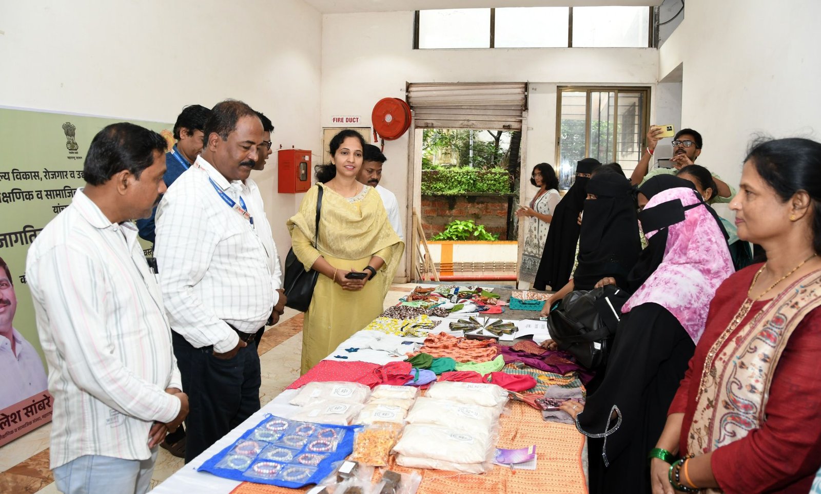 महिलांनी तयार केलेल्या वस्तूंचे प्रदर्शन व विक्री स्टॉलची यावेळी उपस्थितांनी पहाणी केली.