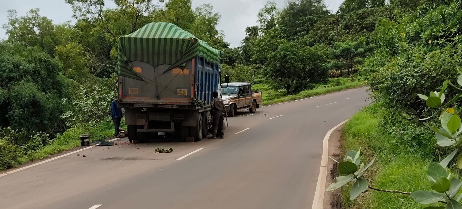 गणपतीपुळे-निवळी मार्गावर वाहतूक विस्कळीत; ओरीच्या वळणावर एकाचवेळी तीन ट्रक बंद