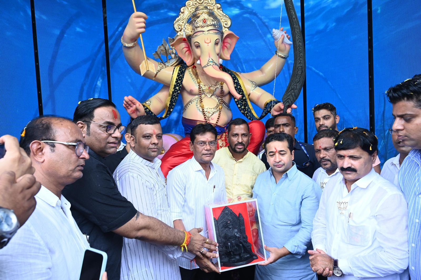 ना. राणे यांनी ‘खेडचा राजा’ चे दर्शन घेतले.मंडळाच्या वतीने त्यांचा सत्कार करण्यात आला.