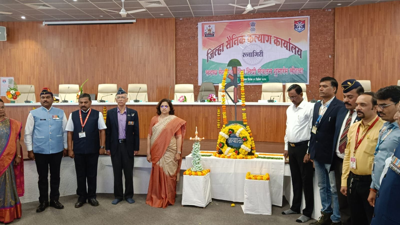 जिल्हा सैनिक कल्याण कार्यालयाच्यावतीने सशस्त्र सेना ध्वजदिन 2025 निधी संकलनाचा शुभारंभ आज जिल्हा नियोजन समिती सभागृहात झाला. या प्रसंगी निवृत्त एअर मार्शल एच एम भागवत, अपर जिल्हाधिकारी भाऊ गलांडे, शिक्षणाधिकारी किरण लोहार, जिल्हा उद्योग केंद्राचे महाव्यवस्थापक अजिंक्य आजगेकर, निवासी उपजिल्हाधिकारी चंद्रकांत सूर्यवंशी, निवृत्त कर्नल प्रशांत चतुर, कमांडर रामांजुल दीक्षित, महानगर गॅसचे आशिष प्रसाद, गौतम झा, अमित शिंदे, स्वामी स्वरुपानंद पतसंस्थचे स्वरुप देसाई, निवृत्त नाईक विजय थत्ते आदी उपस्थित होते.
