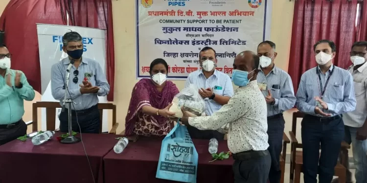 रत्नागिरी:फिनोलेक्स इंडस्ट्रीज आणि मुकुल माधव फाऊंडेशन हे आरोग्य, शिक्षण, कौशल्य विकास, जलसंधारण आणि स्वच्छता यासारख्या विविध क्षेत्रात काम करत आहेत. त्याचाच एक भाग म्हणून रत्नागिरी जिल्ह्यातील क्षयरुग्णांसाठी 203 पोषण रेशन किट्स दान करून ‘निक्षय मित्र’ बनून आरोग्यामध्ये आणखी एक मोलाचा दगड गाठला आहे. गुजरात वडोदरामध्ये ‘निक्षय मित्र’ बनून ८२ क्षयरुग्णांसाठी पोषण रेशन किट्स देऊन मुकुल माधव गुजरात वडोदरामध्ये ‘निक्षय मित्र’ बनून ८२ क्षयरुग्णांसाठी पोषण रेशन किट्स देऊन मुकुल माधव फाउंडेशन ने काम चालू केले आहे. काम चालू केले आहे.